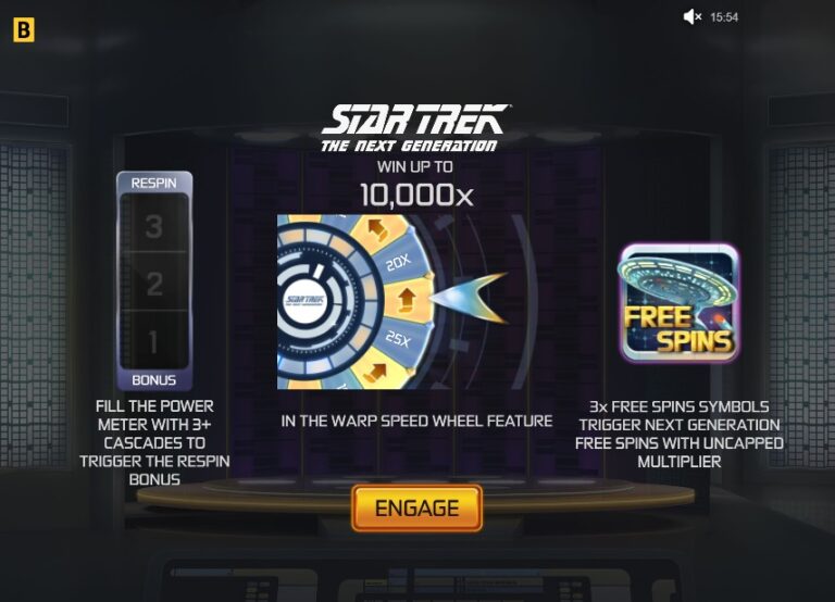 Star Trek: The Next Generation is een meesterwerk van ‘fan service’ en briljant gamedesign. De basisgame, met de ‘Respin Meter’ die leidt naar een ‘pick-me’-bonus en een jackpotwiel, is al een volwaardig spel op zich. De free spins-ronde, met de strategische keuze tussen vier verschillende volatiliteit-modi, is de absolute kers op de taart. Het is een van de diepgaandste en meest gelaagde gokkasten die we hebben gezien, verpakt in een perfect uitgevoerd, authentiek thema. ‘Engage!’