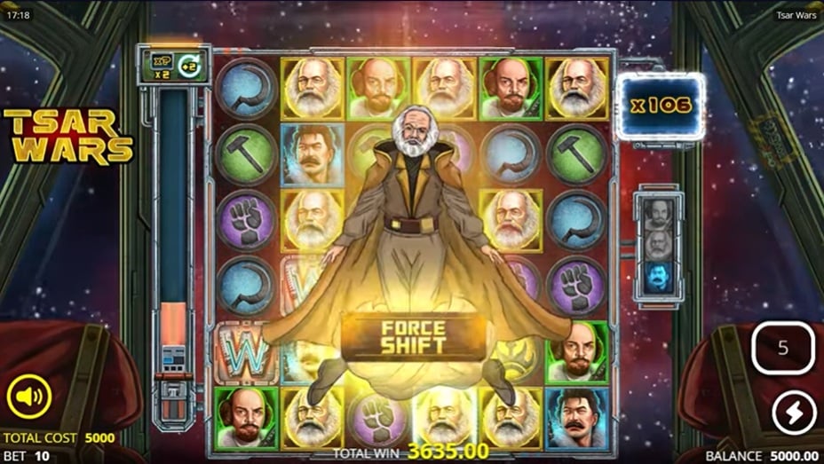 Tsar Wars is een verrassende nieuwe gokkast van Nolimit City die je meeneemt op een buitenaardse missie vol satire, actie en bizarre combinaties. Denk aan een mix van Star Wars en historische figuren als Stalin, Marx en Lenin, maar dan met een dikke knipoog. Op een 6×6 grid met cluster winsten draait alles om vallende symbolen, wilds, multipliers en heftige bonusrondes.