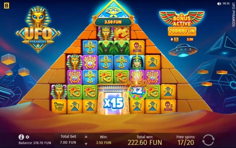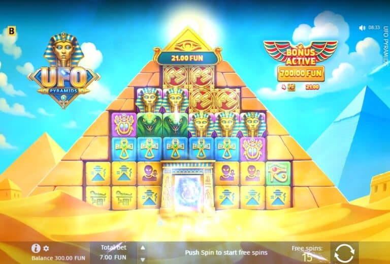UFO Pyramids is een slimme, humoristische en zeer goed betalende variant op het ‘Scatter Pays’-genre. De combinatie van cascades en multipliers tot x500 is een bewezen succesformule. De bonusronde met de niet-resettende globale multiplier zorgt voor de bekende, zenuwslopende opbouw. Wat dit spel echt onderscheidt, is de fenomenale RTP van meer dan 97%. Als je van dit type spel houdt, is dit wiskundig gezien een van de beste keuzes die je kunt maken.