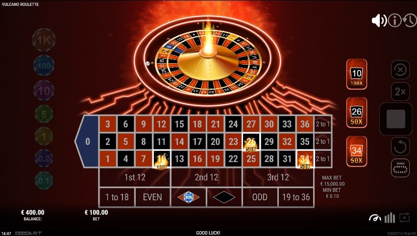 Laat de roulette-tafel ontploffen in de Vulcano Roulette demo