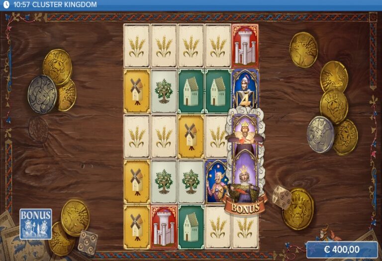 Elk Studios neemt je mee naar een middeleeuws Engeland vol historische details met hun nieuwe gokkast Cluster Kingdom. Laat je betoveren door de prachtige graphics en het kleurrijke ontwerp dat de essentie van deze vervlogen tijd perfect weergeeft. De symbolen op de rollen, zoals kastelen, windmolens en de koning zelf, dompelen je onder in een wereld van ridders, koninginnen en oude schatten.
