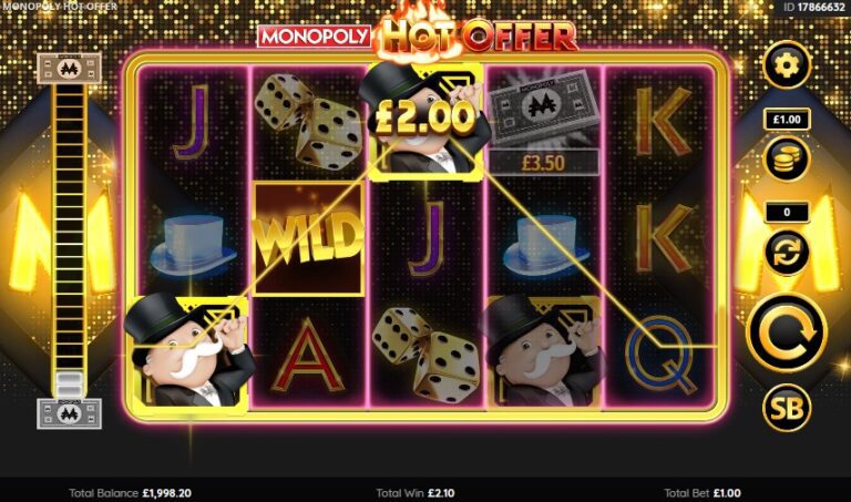 Voel je een echte bankier in Monopoly Hot Offer, waar het wereldberoemde bordspel een spannende twist krijgt. Ga je voor veilig en verzilver je je fiches, of waag je een gokje met de iconische ‘Algemeen Fonds’-feature? De keuze is aan jou: grijp je de HOT OFFER of ga je all-in om hoeden te verzamelen op het bord?